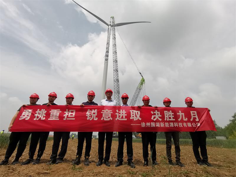 國(guó)湖公司首臺(tái)風(fēng)機(jī)順利吊裝完成!