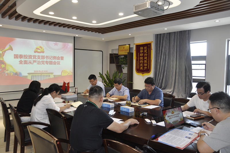 2020年6月10日下午,國泰投資黨總支召開支部書記例會暨全面從嚴治黨專題工作會議。會議以習近平新時代中國特色社會主義思想為指導,深入學習市紀委第十二屆五次全會精神,貫徹落實李曉東同志在集團公司2020年全面從嚴治黨工作會議上的講話,推動國泰投資公司全面從嚴治黨向縱深發(fā)展。會議由國泰投資黨總支書記霍凱主持,黨總支中心組成員、各直屬黨支部書記參加。