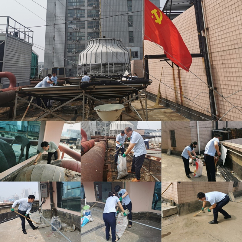 當(dāng)天上午,全體黨員、入黨積極分子以及遞交入黨申請書的同志帶上提前準(zhǔn)備好的鐵锨、掃帚、簸箕等清掃工具對七樓平臺開展清掃工作,有的黨員搬運清理堆積的舊物,有的同志清掃雜物,有的黨員收垃圾......烈日下汗水很快浸濕了大家的后背,模糊了雙眼,但這些“紅色”的身影不怕臟不怕累,團(tuán)結(jié)協(xié)作,干勁十足,以實際行動踐行勞動精神,發(fā)揚文明新風(fēng)。經(jīng)過近三個小時的辛勤勞動,平臺所有死角被徹底清理,衛(wèi)生整體干凈整潔。這次義務(wù)勞動充分彰顯了成功大廈黨員和群眾的工作熱情,以及黨員的先鋒模范帶頭作用,切實發(fā)揮一個黨員一面旗幟,一個支部一座堡壘的作用。