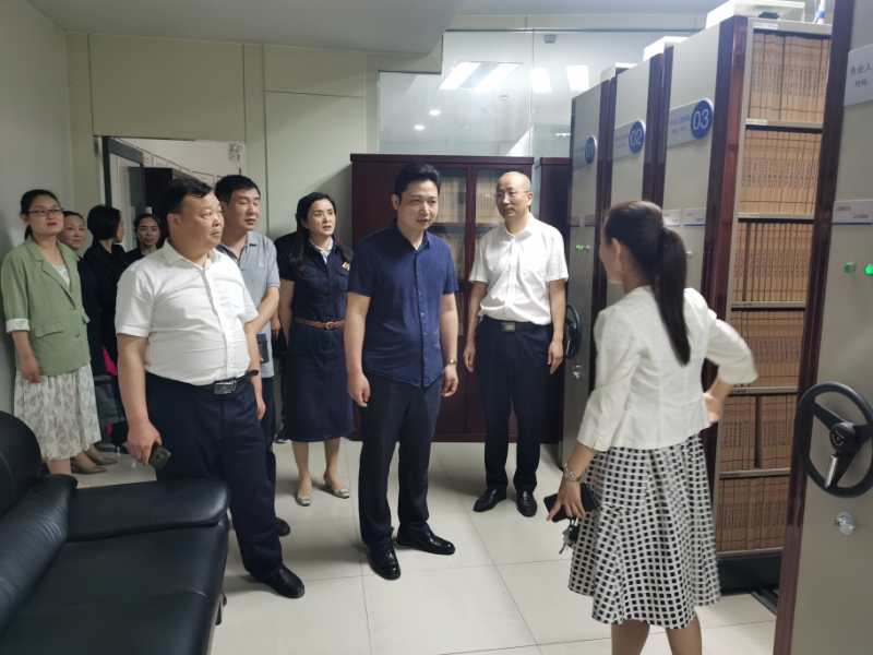 調(diào)研中,莊昱一行實地查看了C區(qū)綜合業(yè)務(wù)柜臺、代理業(yè)務(wù)柜臺、B區(qū)檔案接收室和地下檔案庫房等辦公場所,并邊查看邊詳細聽取勞代中心負責人對各部門工作開展情況的介紹。在調(diào)研座談會上,勞代中心負責人匯報了企業(yè)基本情況、經(jīng)營指標完成情況、經(jīng)營情況、黨建工作情況,并對開展“一違三亂兩高兩低”自查情況作了專題匯報。