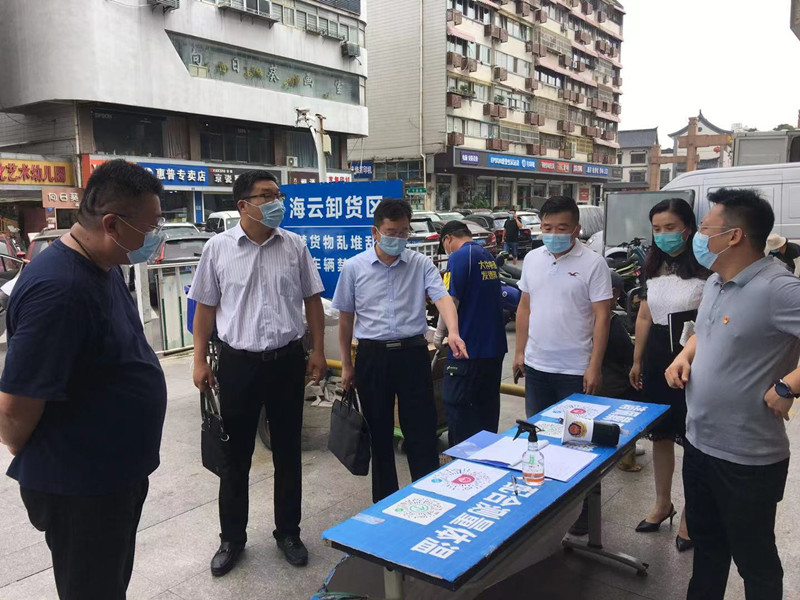 唐自輝一行隨機選取了集團所屬海云公司,現(xiàn)場查看疫情防控工作開展情況。重點檢查海云大廈出入口處健康碼和行程碼掃描登記、人員口罩佩戴、電梯間和食堂等公共區(qū)域衛(wèi)生設(shè)施消毒情況,并對防疫物資儲備情況進行了詳細查看。