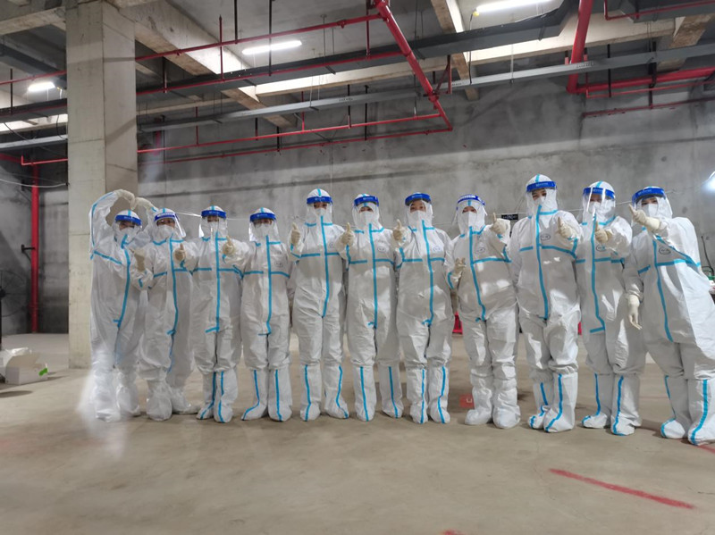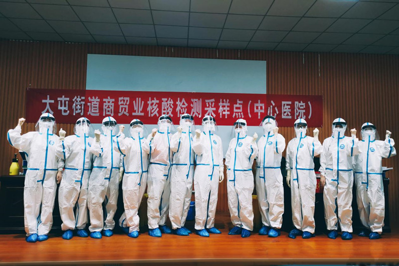 7月24日,沛縣衛(wèi)健委發(fā)出緊急援寧號召,7月25日早上,醫(yī)院緊急派出12名精兵強將馳援南京。在南京核酸采樣工作中,12名天使不負眾望,在炎熱的天氣里,在簡陋的環(huán)境下,發(fā)揚了礦醫(yī)人吃苦耐勞、能打勝仗的優(yōu)良傳統(tǒng)和大愛無疆的職業(yè)道德精神,冒著酷暑,穿著封閉的防護裝備,走進社區(qū),深入鄉(xiāng)村,并且赴不能到現(xiàn)場進行采樣的人家中采樣。援寧期間共采樣4萬余人,為南京抗疫工作做出了巨大的貢獻。她們的奉獻、敬業(yè)、職業(yè)素養(yǎng),得到了沛縣衛(wèi)健委、集團領導和采樣居民的一致贊揚。