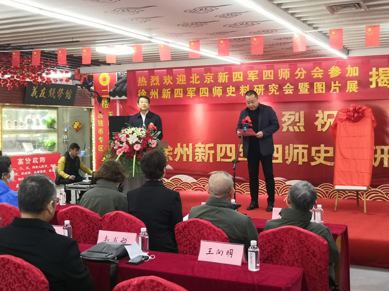 下午2點(diǎn),揭牌儀式在徐州古玩城正式舉行。原國務(wù)院副總理鄧子恢之女鄧小燕、原中國人民解放軍總參謀長、中共中央書記處書記黃克誠之子黃旭、原中國人民解放軍總政治部主任、中共中央軍委常委韋國清之子韋肖毅等老一輩革命家、新四軍的后代參加了本次活動。