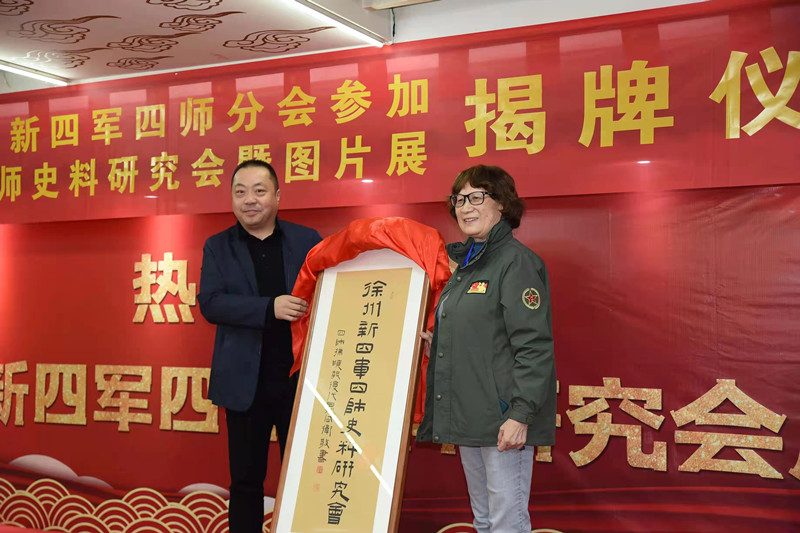 活動中,郭壘與鄧小燕共同為“徐州新四軍四師史料研究會”進(jìn)行了揭牌。揭牌儀式后大家至蘇悅黨史館進(jìn)行了參觀,參觀過程中,鄧小燕對集團(tuán)公司為“徐州新四軍四師史料研究會”的成立所做出的辛苦工作表示感謝,同時為下一步如何將新四軍精神發(fā)揚(yáng)傳播提出了指導(dǎo)意見。