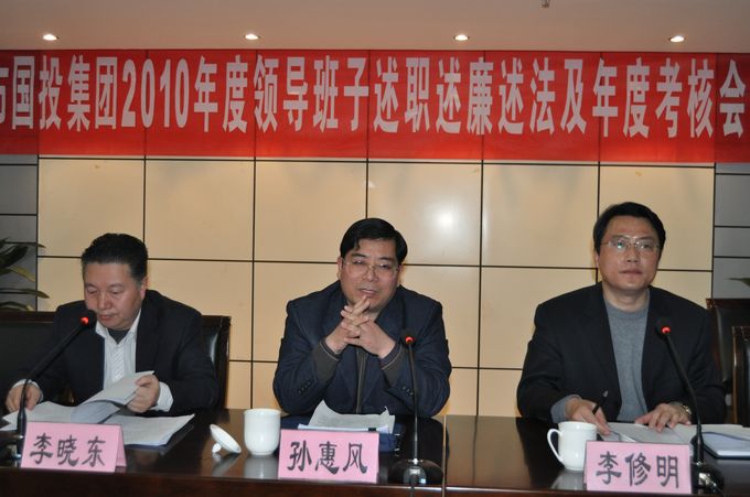 參加本次會議的有市委組織部考核組成員、集團公司領(lǐng)導(dǎo)班子全體成員、集團公司本部中層以上干部和部分職工代表,共計40余人。集團公司黨委書記、董事長李修明主持了會議,并代表集團公司領(lǐng)導(dǎo)班子對過去一年在思想政治建設(shè)、完成重點任務(wù)、工作實績、領(lǐng)導(dǎo)水平、反腐倡廉以及依法經(jīng)營等方面的情況向大會進行了述職述廉述法報告。李修明及黨委副書記、副董事長、總經(jīng)理李曉東分別做了本人一年來的述職述廉述法報告。
