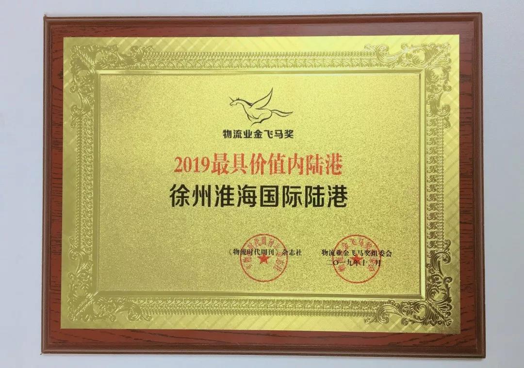 近期中國交通運(yùn)輸協(xié)會城市物流分會組織了“2019最具價(jià)值內(nèi)陸港”網(wǎng)上評選活動(dòng),經(jīng)過網(wǎng)上投票評選和線下綜合評估,徐州淮海國際陸港發(fā)展有限公司榮獲“2019最具價(jià)值內(nèi)陸港”物流業(yè)金飛馬獎(jiǎng)。